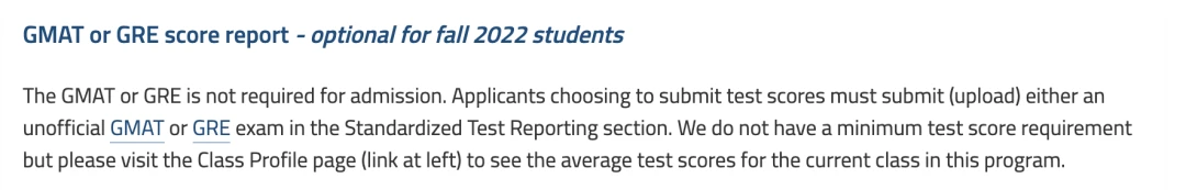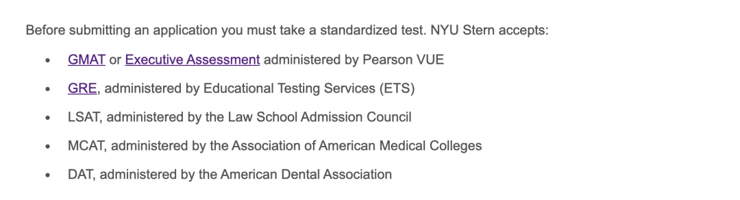 例如我们来看纽约大学Stern商学院对于MBA的录取要求,官网说明考生可以提交GRE或者GMAT成绩。