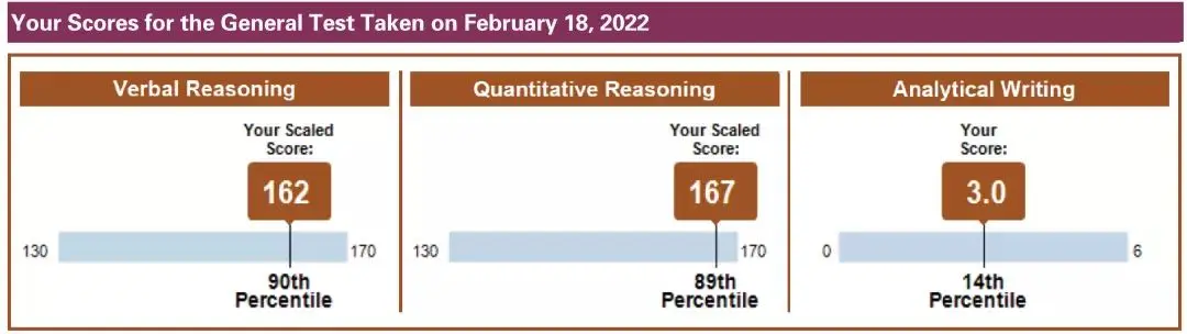 之前没有出国读研的打算,所以相比其他同学我的备考时间非常有限,压力比较大。再加上各种课业繁忙一直没有开始正式的复习, 从21年12月17才开始脱产复习做最后冲刺, 22年2月中终于出分 V162+Q167。