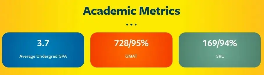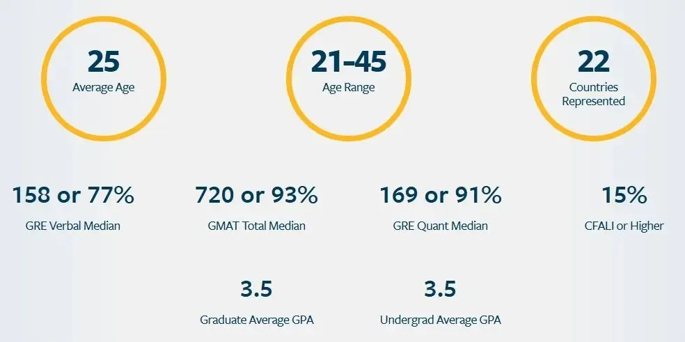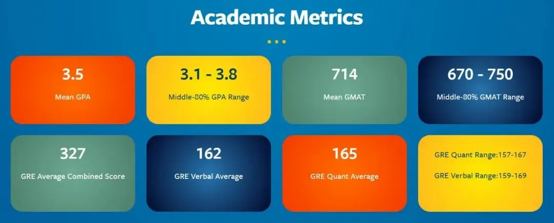 BA项目录取学生的平均GPA为 3.7,本科背景主要集中在工商管理、经济学和工程类专业。录取学生的 GRE数学平均分高达169,展现出优秀的量化能力。