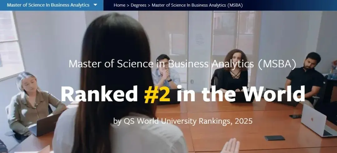 UCLA的商业分析硕士(MSBA)QS全球排名第2,是为期15个月的STEM认证项目,帮助学生掌握数据分析、可视化和战略思维,成为企业争抢的高价值人才。