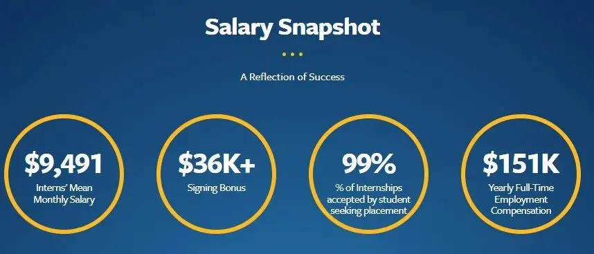 该项目毕业生的第一年平均总年薪高达 $137,000,且 97% 的学生在毕业后 6个月内成功就业,展现出强劲的市场竞争力和就业前景。