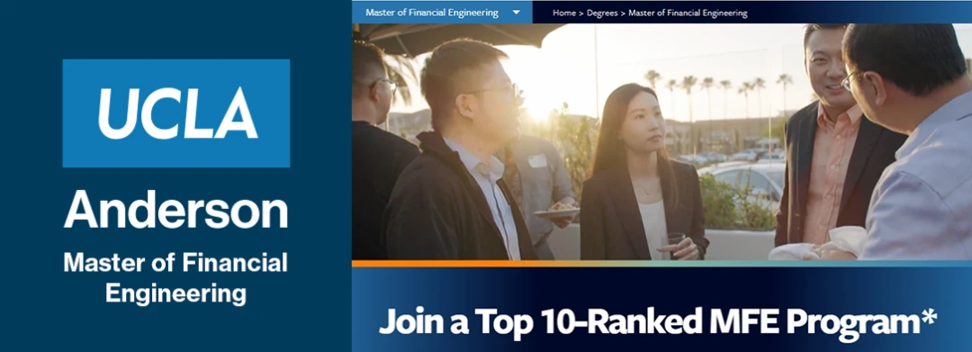 UCLA的金融工程项目MFE,在QS排名全美第3,QuantNet排名第17,专为具备强大数学建模和计算能力的人才设计,将卓越的量化技能转化为应对现代金融市场的核心竞争力,为未来职业发展打开更广阔的道路。