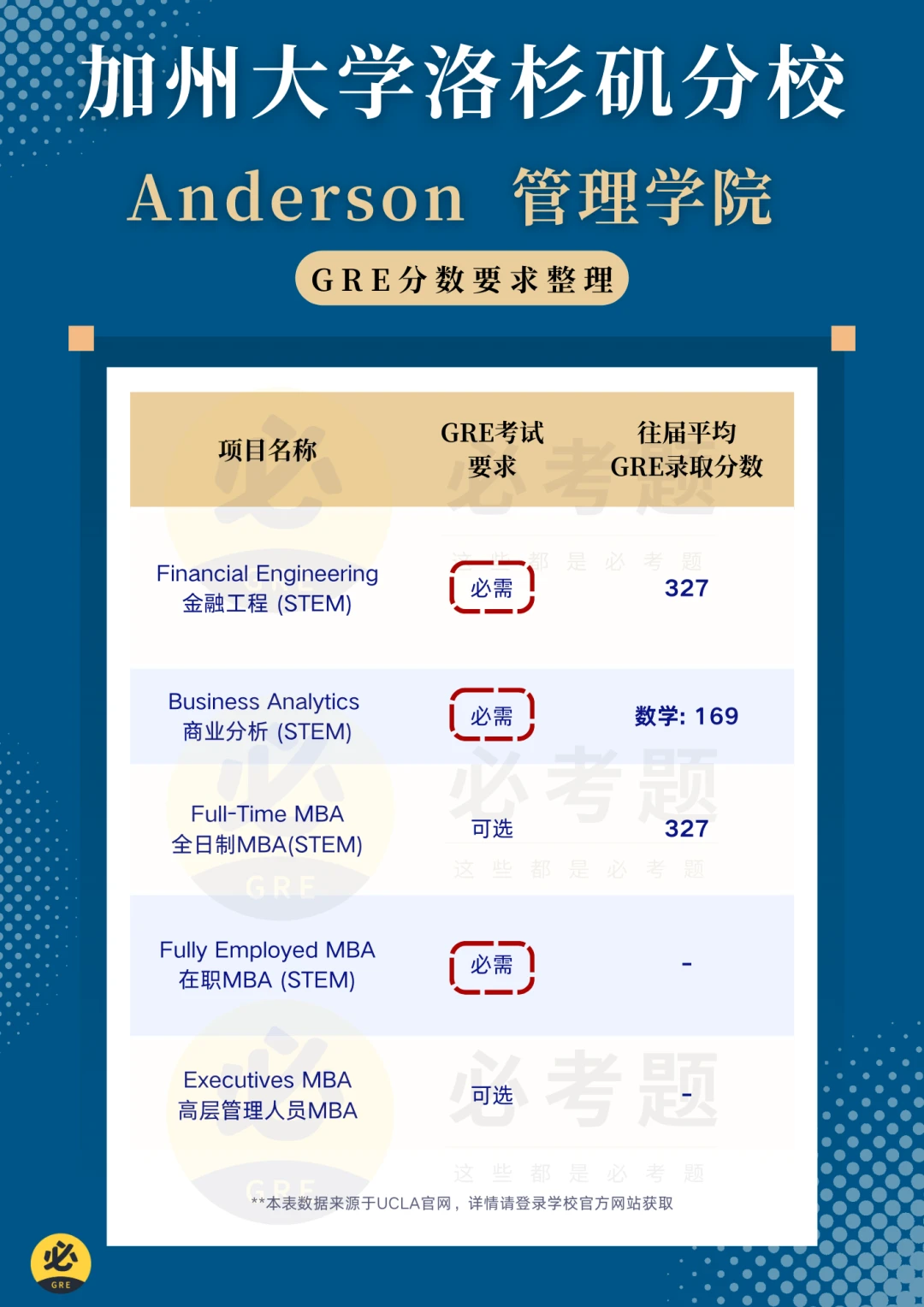 总结来看,加州大学洛杉矶分校安德森管理学院,大多数项目都要求提交GRE成绩!