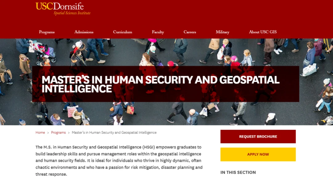 人类安全与地理空间情报硕士(MS in Human Security and Geospatial Intelligence),由 Dornsife文理学院开设。