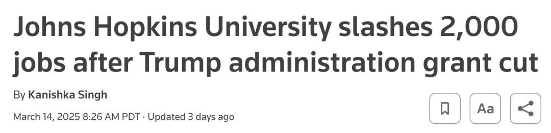 自今年上任以来,特朗普与马斯克推动解散USAID,并削减逾80%的项目,JHU受此波及。
