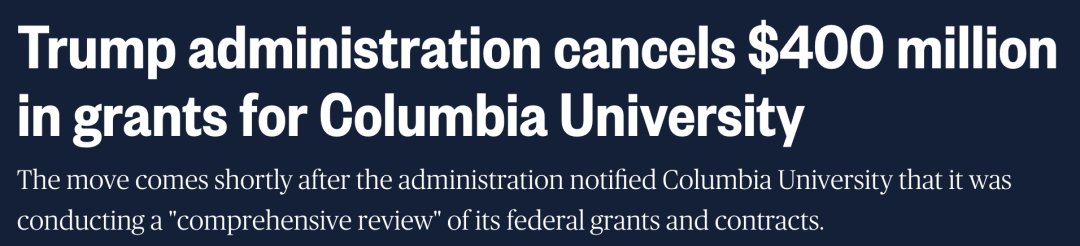 JHU的8亿美元经费被取消,而哥大则被砍4亿美元资金。此外,政府还计划对包括耶鲁在内的60所高校采取类似资金削减措施。
