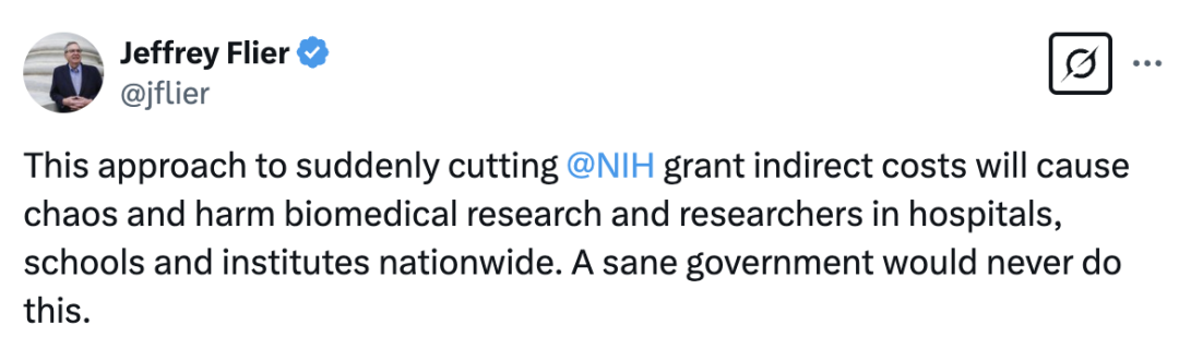 NIH:好的老板, 立马将间接经费一刀切至15%🫡