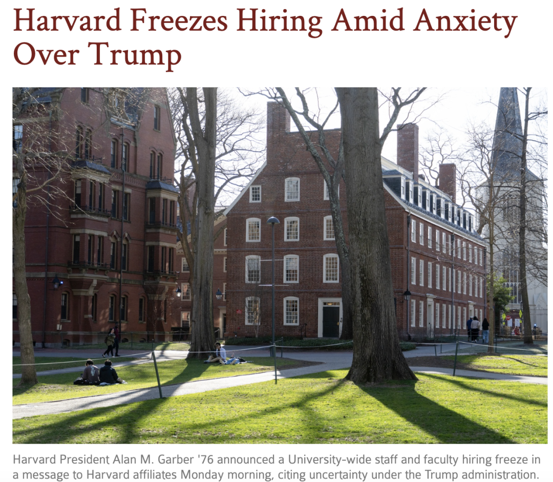 哈佛于3月10日宣布,因特朗普政府的政策带来了巨大的财政不确定性,学校将立即实施全校范围内招聘冻结,直至财政状况明朗。