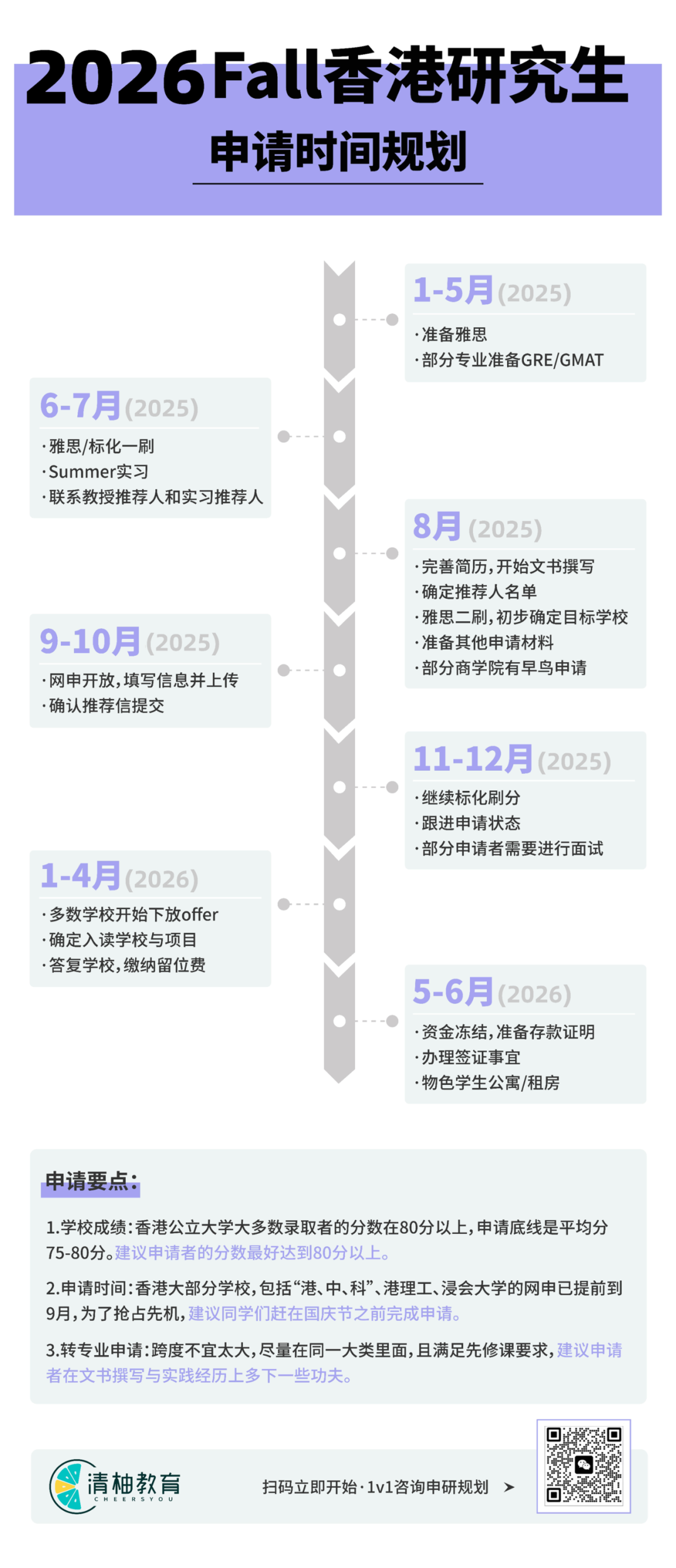 建议计划26Fall申请港大的同学尽早投入GRE备考,以及申研规划,抢占申请先机!